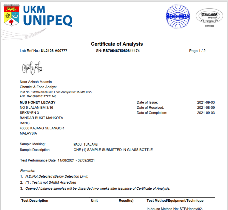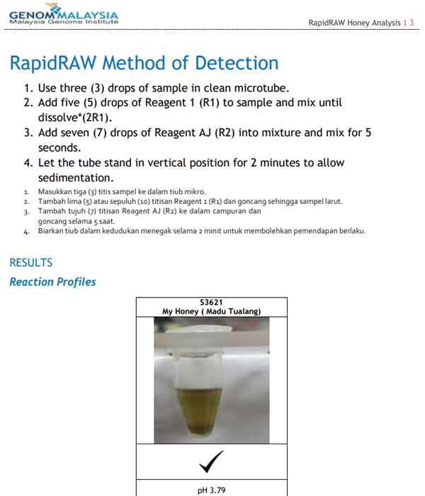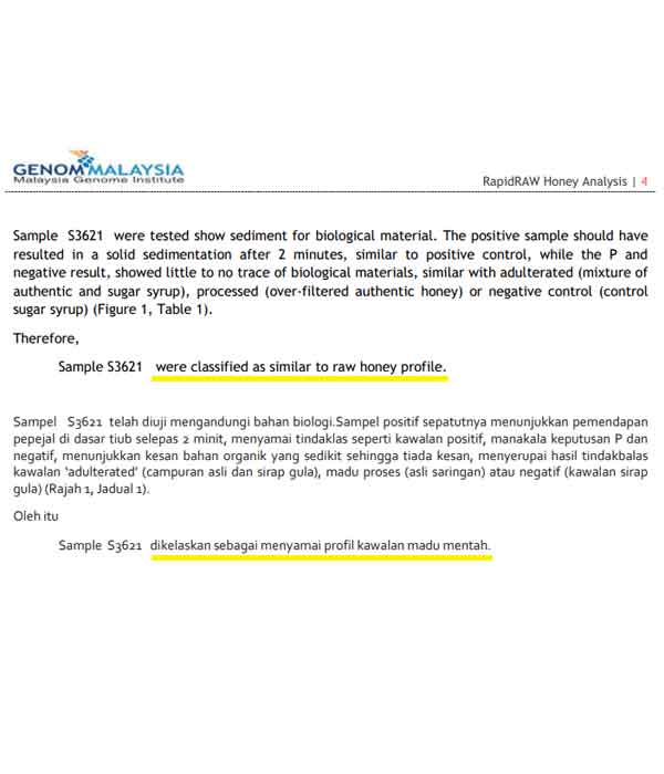 Setiap Madu Tualang My Honeey akan dihantar ke Makmal Genom UKM untuk diperiksa keasliannya